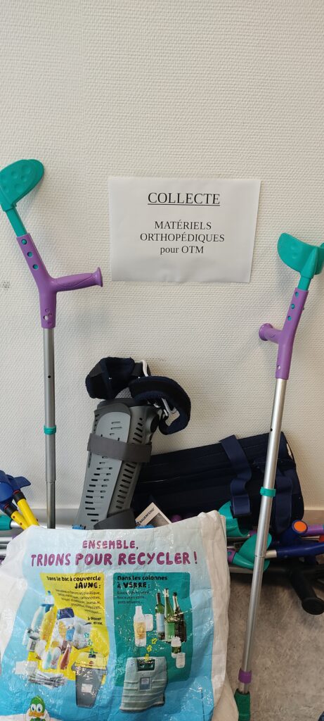 - La collecte de matériels orthopédiques et la remise au Bénin, avec le message de M. CROISE ci-dessous:
