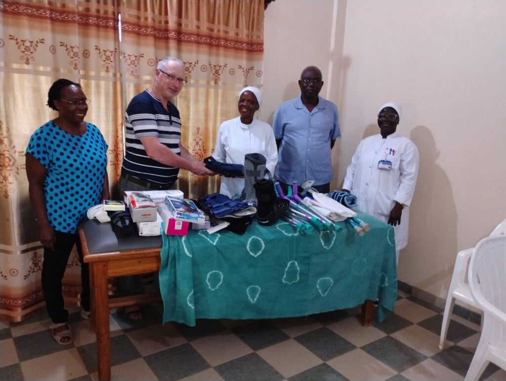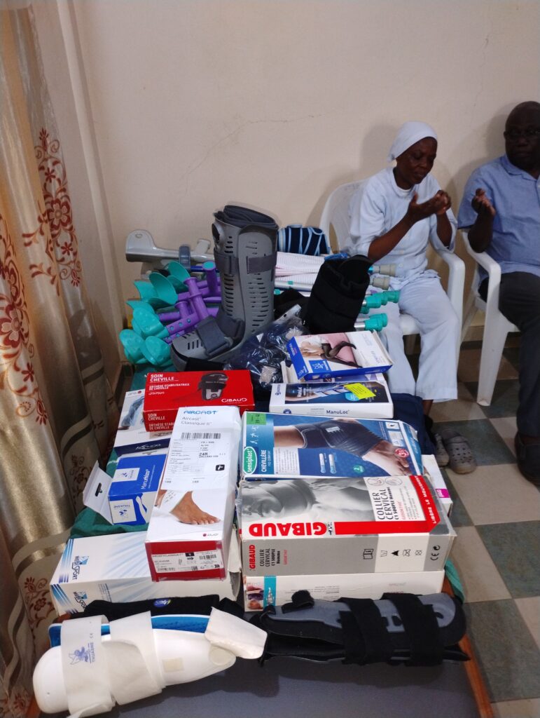 « Notre mission touche à sa fin. Nous avons pu remettre votre collecte au Centre de Santé à Vocation Humanitaire de CALAVI – BÉNIN. Je vous adresse quelques photos de la remise au service de kinésithérapie de cette structure tenue par des sœurs. Avec leurs remerciements »