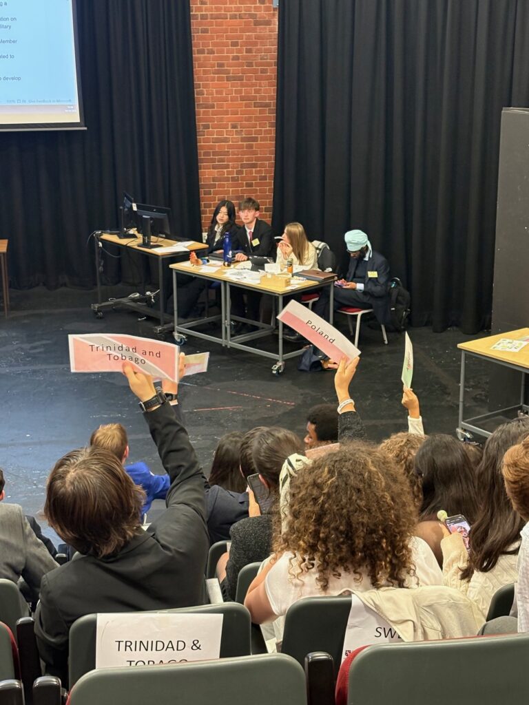 Du samedi 18 au mardi 21 octobre, les élèves de l’option IMUN ainsi que les professeurs d’ASB Mr Stark et Mrs Magnard se sont rendus à Royal Russell, un collège-lycée situé au sud de Londres, à Croydon, pour participer à une conférence MUN (Model United Nations). Nous avons représenté différents pays (Danemark, Espagne et Pologne) et avons débattu en défendant leurs points de vue sur des enjeux mondiaux.