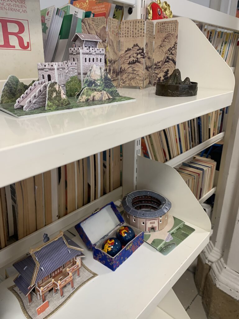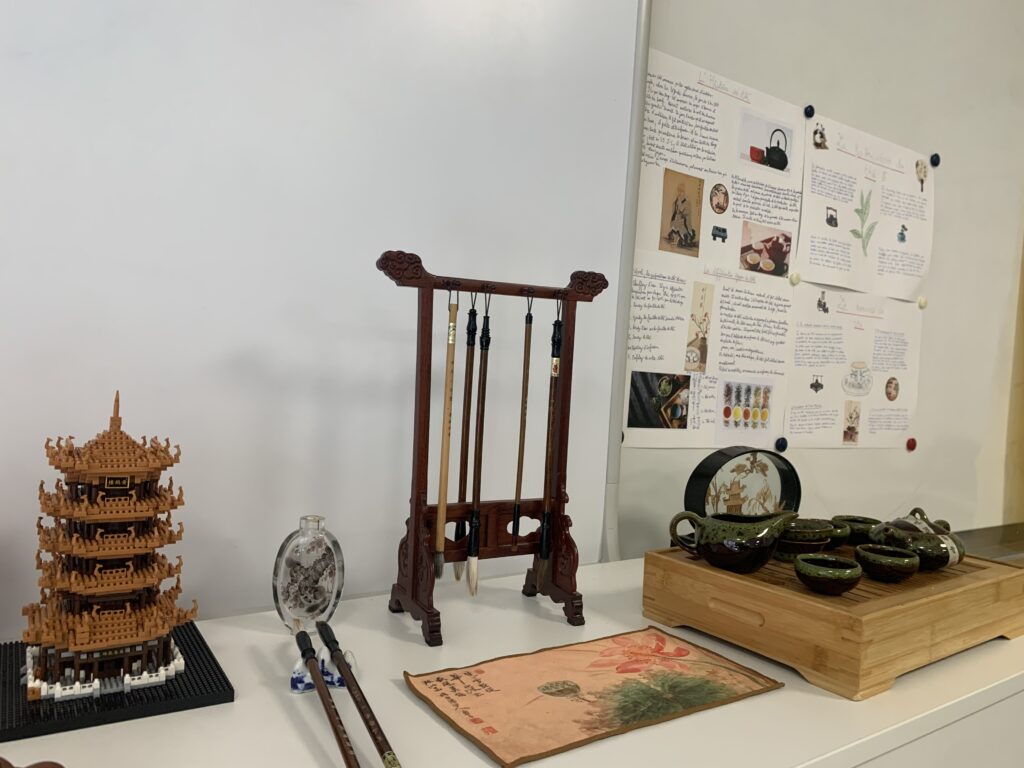 Les élèves sinisants de 3e ont préparé, avec leur professeur Mme Marin, des panneaux informatifs pour présenter différentes traditions chinoises, de la cérémonie du thé à la danse du lion en passant par la calligraphie ou le découpage. Divers objets font écho aux explications pour rendre plus concrète l’exposition.