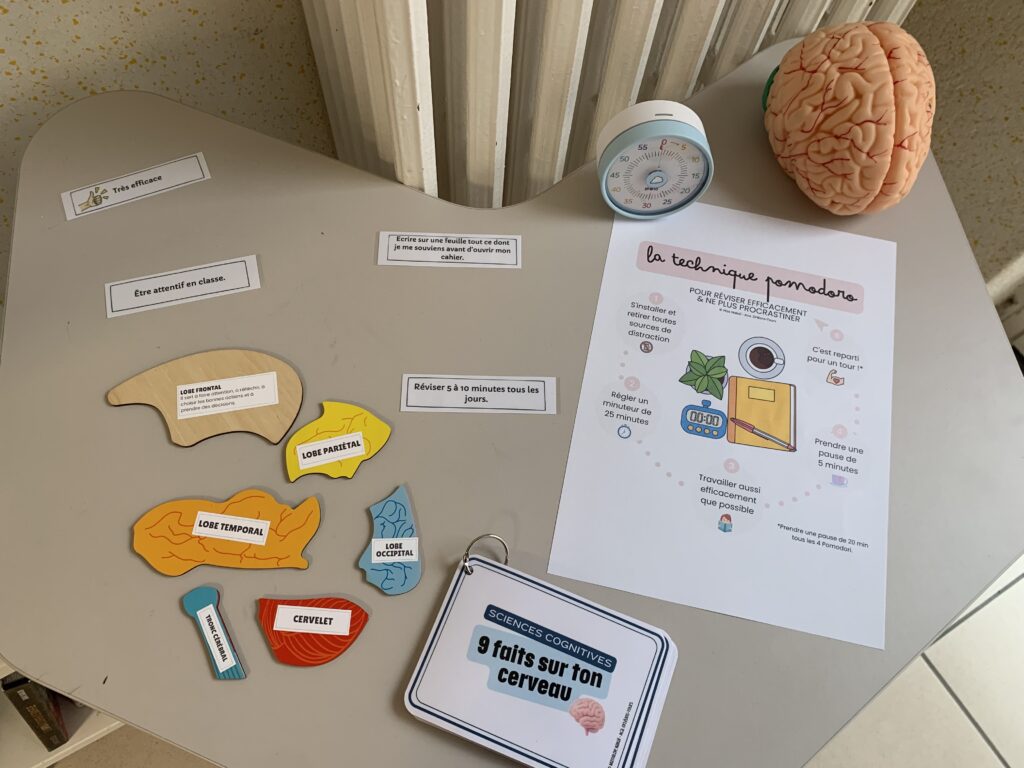 Cet espace consacré au CDI complète l’offre des ateliers proposés aux élèves par les professeurs ressources Mme Nakaï et Mme Lemaignen : « apprendre à apprendre » sur des temps de vie de classe ou des créneaux dédiés. Outre les secrets du cerveau, ces ateliers aident les élèves à appréhender l’attention et la motivation, à mieux se connaître, ou encore à travailler en équipe.